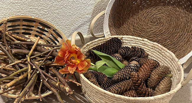 Korb geflochten, rechteckig, 340 x 240 x 80 mm, Bambus, nature/schwarz